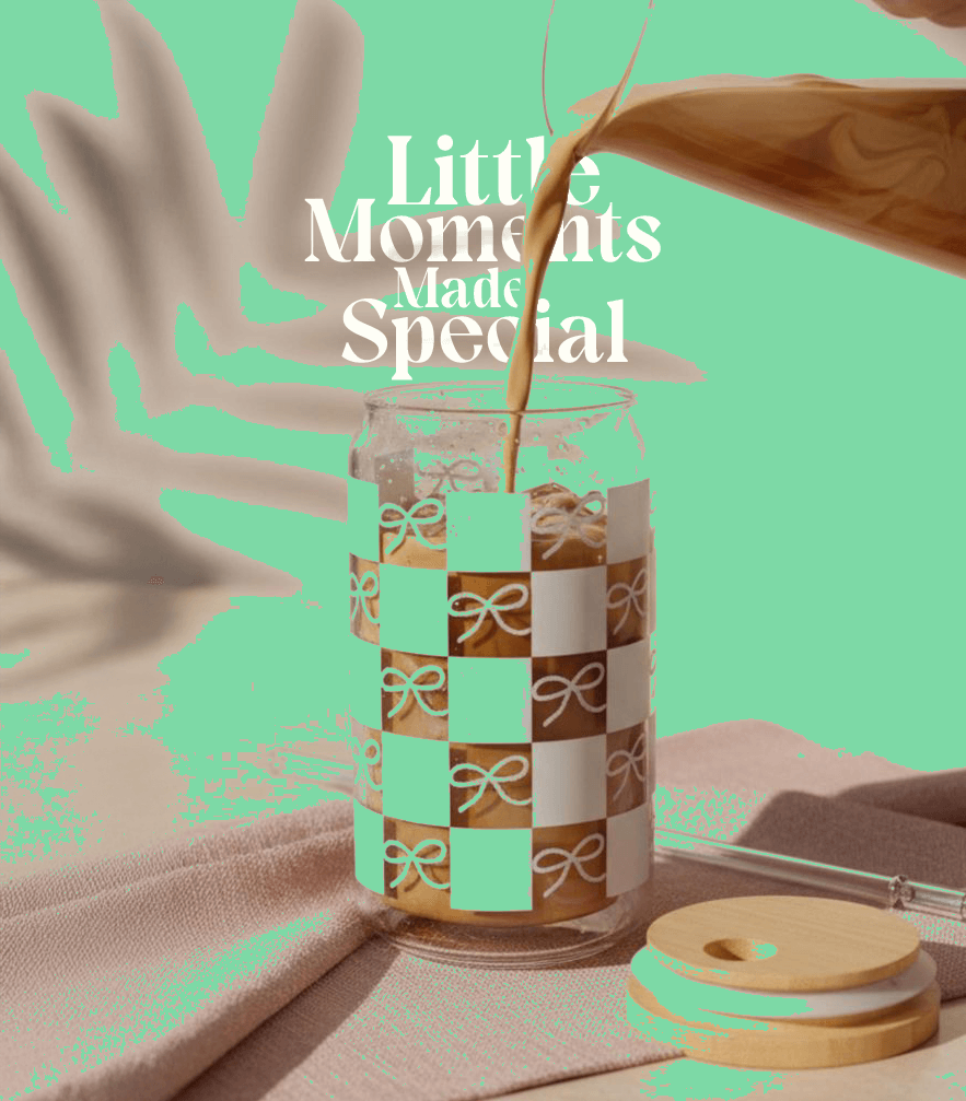 Celebrate yourself with every sip. This collection features glass cans and tumblers...