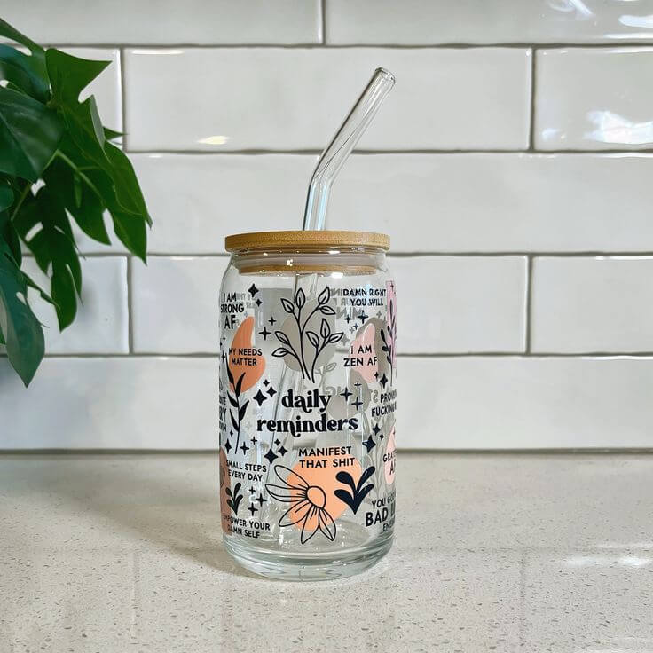 A little reminder, just for you. Each self-love glass can carries a positive quote or design meant to lift your mood and make everyday moments feel kinder, calmer, and more personal.